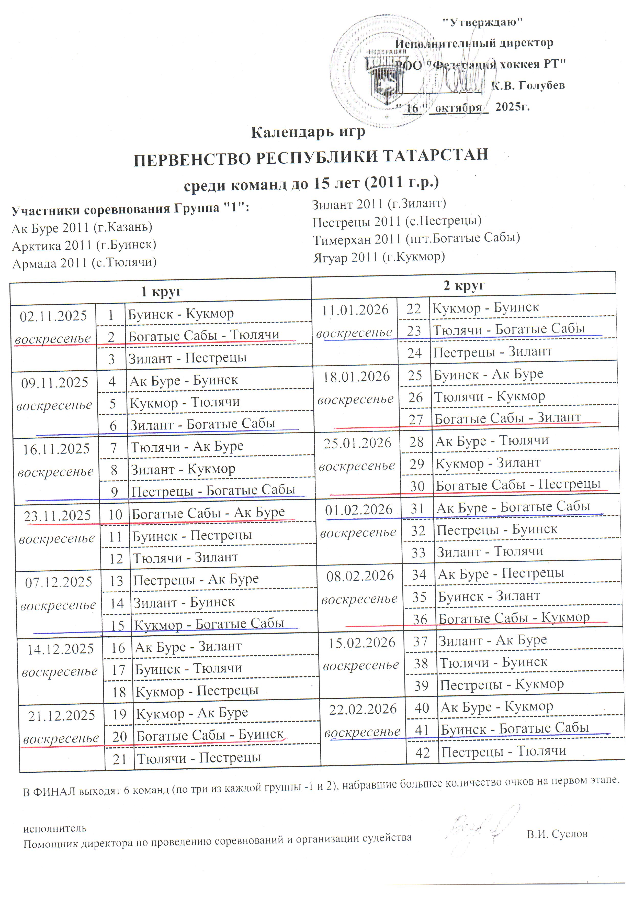 Календарь игр Первенство РТ среди команд до 15 лет (2011 г.р.)