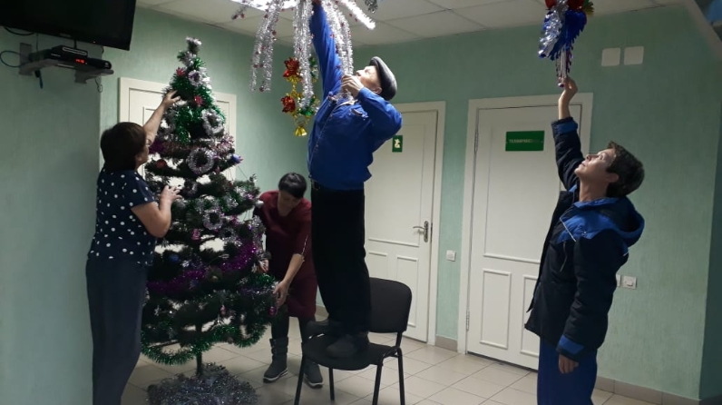 2 декабря в холле Спортивного комплекса "Нарат" была установлена елка, а так же новогодние игрушки и гирлянды.